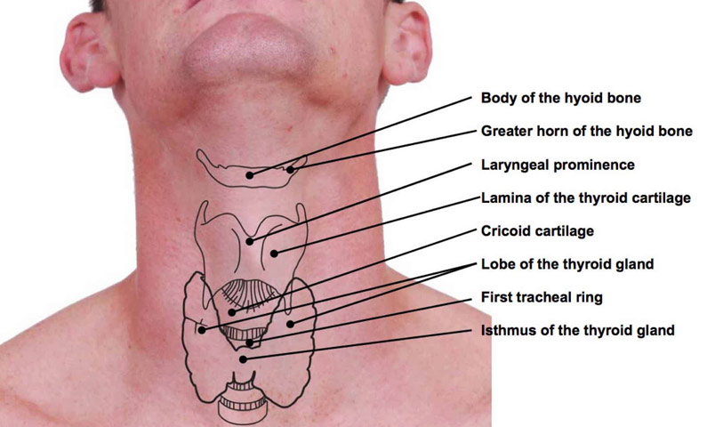۱)مشاهده گردن و جایگاه حنجره.